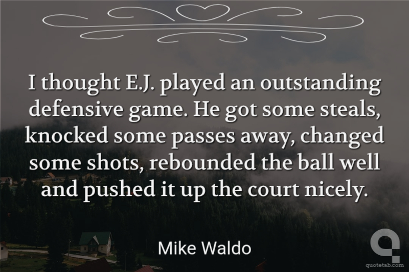 I thought E.J. played an outstanding defensive game. He got some steals, knocked some passes away, changed some shots, rebounded the ball well and pushed it up the court nicely.
