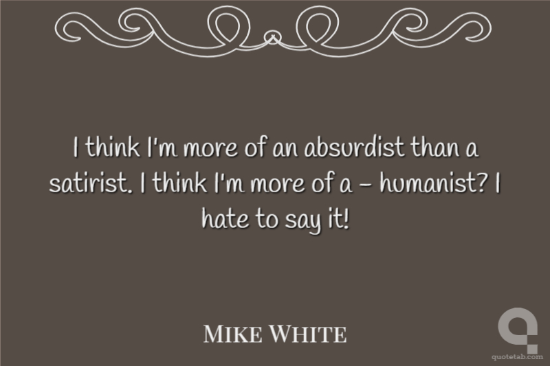 I think I'm more of an absurdist than a satirist. I think I'm more of a - humanist? I hate to say it!