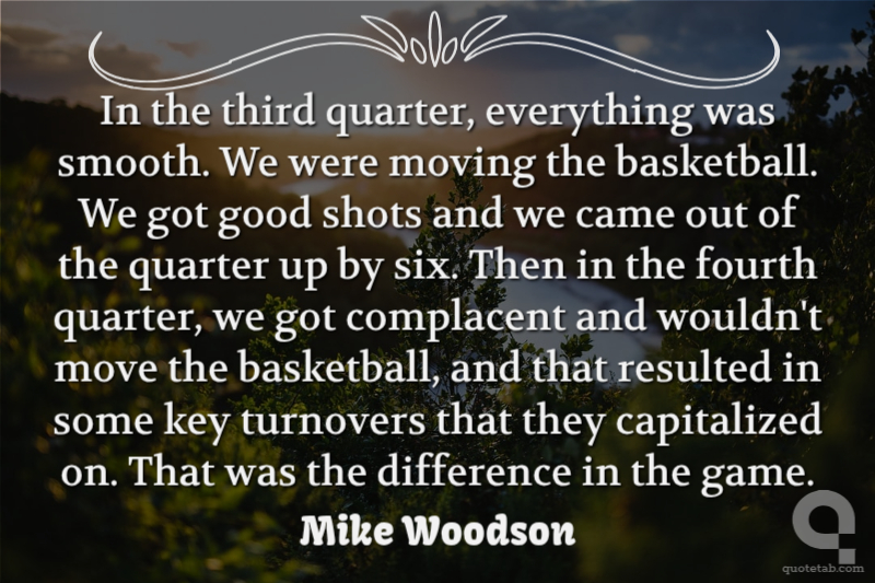 In the third quarter, everything was smooth. We were moving the basketball. We got good shots and we came out of the quarter up by six. Then in the fourth quarter, we got complacent and wouldn't move the basketball, and that resulted in some key turnovers that they capitalized on. That was the difference in the game.
