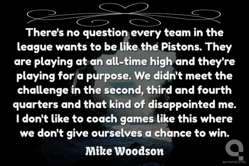 There's no question every team in the league wants to be like the Pistons. They are playing at an all-time high and they're playing for a purpose. We didn't meet the challenge in the second, third and fourth quarters and that kind of disappointed me. I don't like to coach games like this where we don't give ourselves a chance to win.