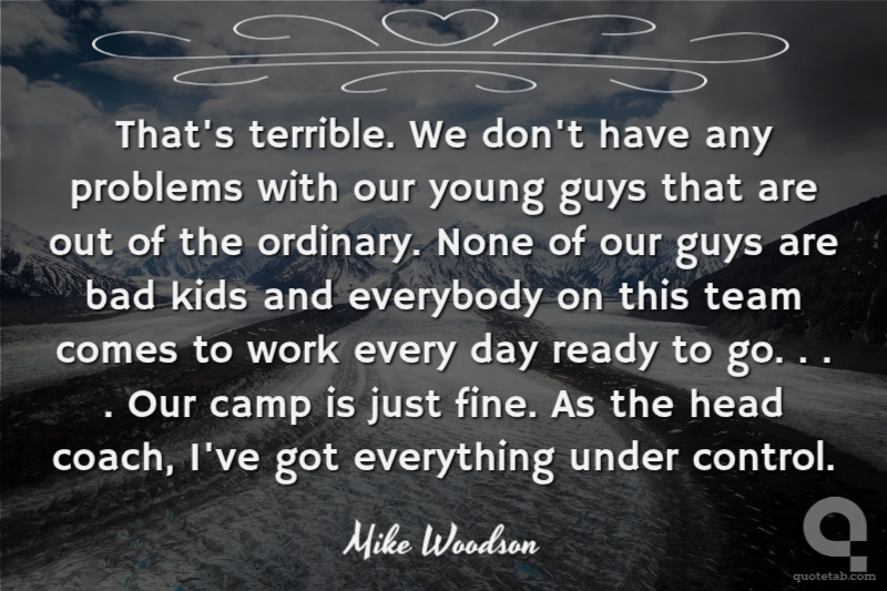 That's terrible. We don't have any problems with our young guys that are out of the ordinary. None of our guys are bad kids and everybody on this team comes to work every day ready to go. . . . Our camp is just fine. As the head coach, I've got everything under control.