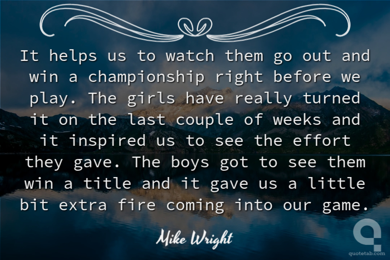 It helps us to watch them go out and win a championship right before we play. The girls have really turned it on the last couple of weeks and it inspired us to see the effort they gave. The boys got to see them win a title and it gave us a little bit extra fire coming into our game.