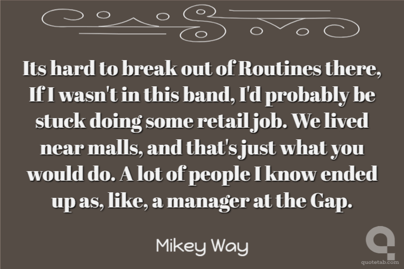 Its hard to break out of Routines there, If I wasn't in this band, I'd probably be stuck doing some retail job. We lived near malls, and that's just what you would do. A lot of people I know ended up as, like, a manager at the Gap.