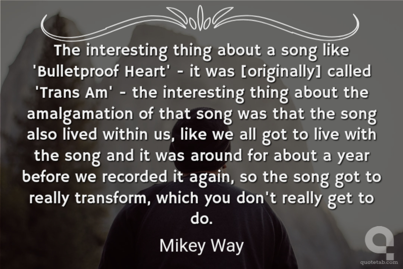 The interesting thing about a song like 'Bulletproof Heart' - it was [originally] called 'Trans Am' - the interesting thing about the amalgamation of that song was that the song also lived within us, like we all got to live with the song and it was around for about a year before we recorded it again, so the song got to really transform, which you don't really get to do.