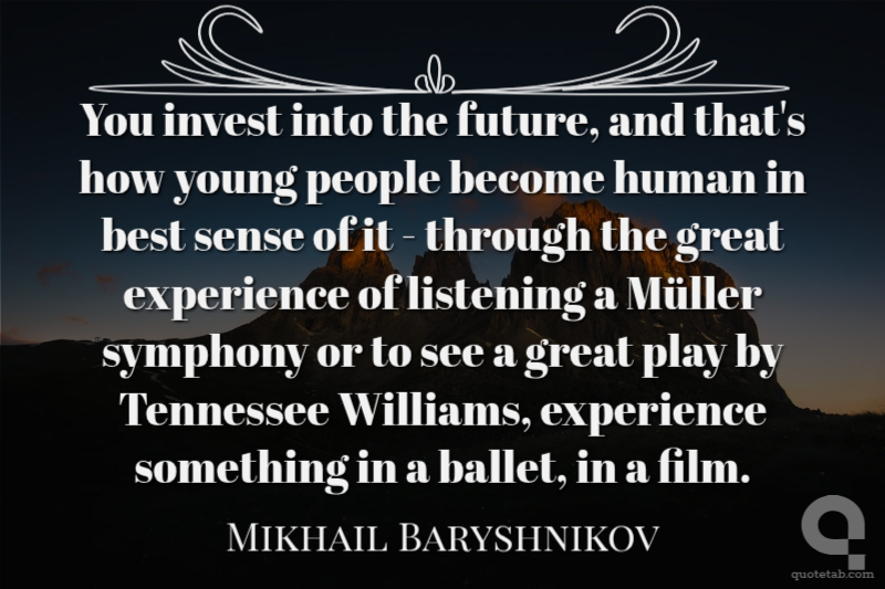 You invest into the future, and that's how young people become human in best sense of it - through the great experience of listening a Müller symphony or to see a great play by Tennessee Williams, experience something in a ballet, in a film.