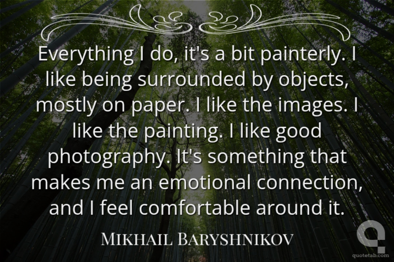 Everything I do, it's a bit painterly. I like being surrounded by objects, mostly on paper. I like the images. I like the painting. I like good photography. It's something that makes me an emotional connection, and I feel comfortable around it.