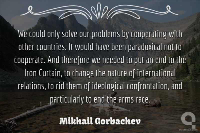 We could only solve our problems by cooperating with other countries. It would have been paradoxical not to cooperate. And therefore we needed to put an end to the Iron Curtain, to change the nature of international relations, to rid them of ideological confrontation, and particularly to end the arms race.