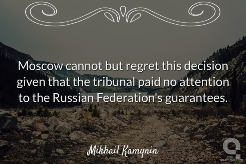 Moscow cannot but regret this decision given that the tribunal paid no attention to the Russian Federation's guarantees.