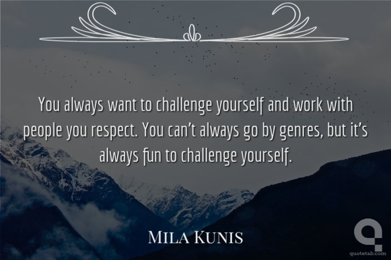You always want to challenge yourself and work with people you respect. You can't always go by genres, but it's always fun to challenge yourself.