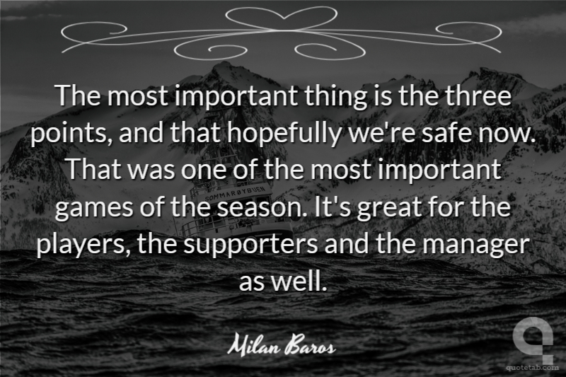 The most important thing is the three points, and that hopefully we're safe now. That was one of the most important games of the season. It's great for the players, the supporters and the manager as well.