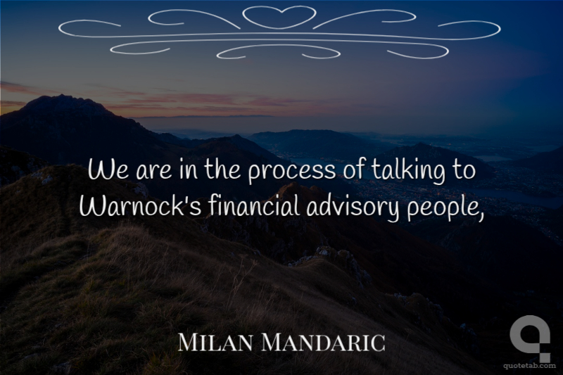We are in the process of talking to Warnock's financial advisory people,