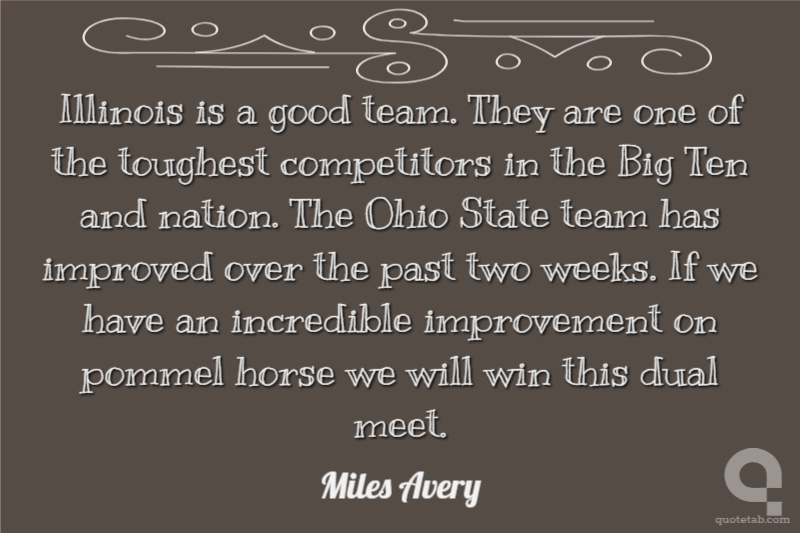 Illinois is a good team. They are one of the toughest competitors in the Big Ten and nation. The Ohio State team has improved over the past two weeks. If we have an incredible improvement on pommel horse we will win this dual meet.