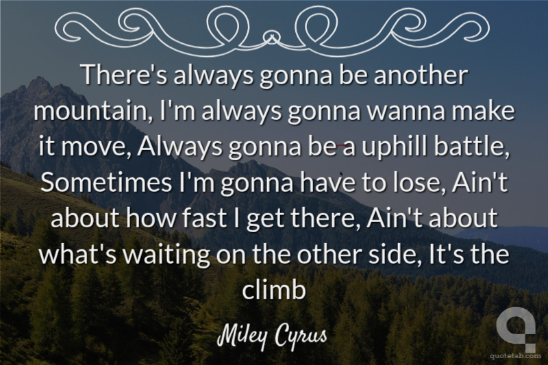 There's always gonna be another mountain, I'm always gonna wanna make it move, Always gonna be a uphill battle, Sometimes I'm gonna have to lose, Ain't about how fast I get there, Ain't about what's waiting on the other side, It's the climb