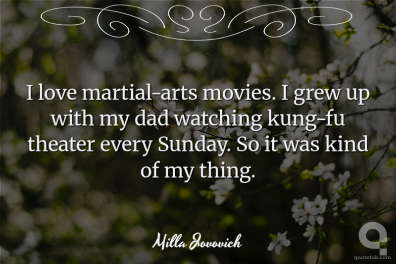I love martial-arts movies. I grew up with my dad watching kung-fu theater every Sunday. So it was kind of my thing.
