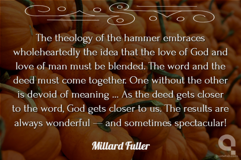 The theology of the hammer embraces wholeheartedly the idea that the love of God and love of man must be blended. The word and the deed must come together. One without the other is devoid of meaning … As the deed gets closer to the word, God gets closer to us. The results are always wonderful — and sometimes spectacular!