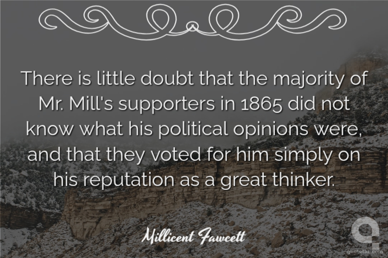 There is little doubt that the majority of Mr. Mill's supporters in 1865 did not know what his political opinions were, and that they voted for him simply on his reputation as a great thinker.
