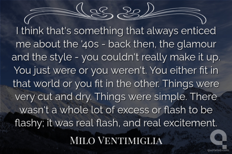 I think that's something that always enticed me about the '40s - back then, the glamour and the style - you couldn't really make it up. You just were or you weren't. You either fit in that world or you fit in the other. Things were very cut and dry. Things were simple. There wasn't a whole lot of excess or flash to be flashy; it was real flash, and real excitement.