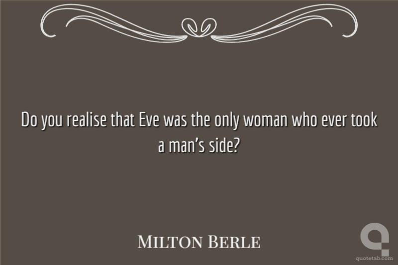 Do you realise that Eve was the only woman who ever took a man's side?