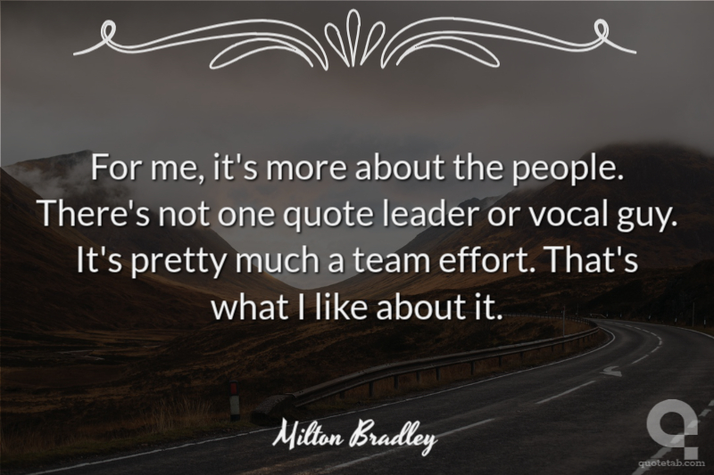For me, it's more about the people. There's not one quote leader or vocal guy. It's pretty much a team effort. That's what I like about it.