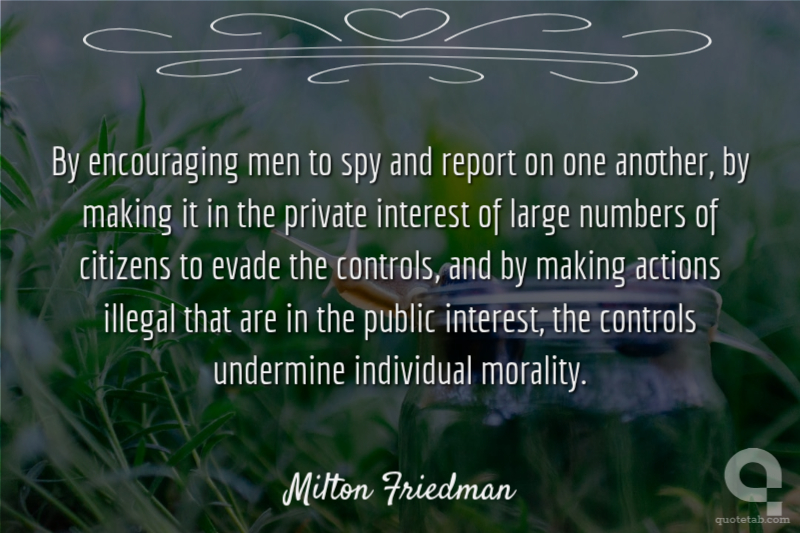 By encouraging men to spy and report on one another, by making it in the private interest of large numbers of citizens to evade the controls, and by making actions illegal that are in the public interest, the controls undermine individual morality.