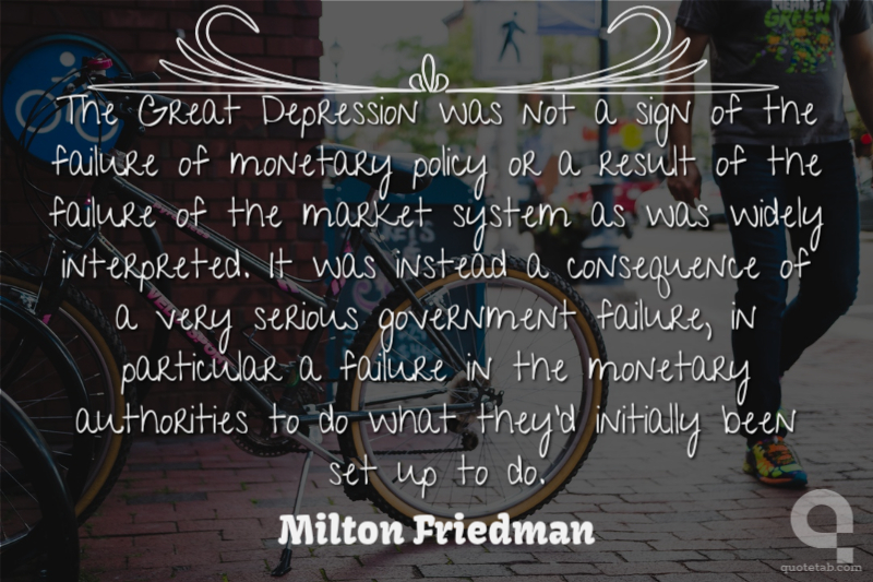The Great Depression was not a sign of the failure of monetary policy or a result of the failure of the market system as was widely interpreted. It was instead a consequence of a very serious government failure, in particular a failure in the monetary authorities to do what they'd initially been set up to do.