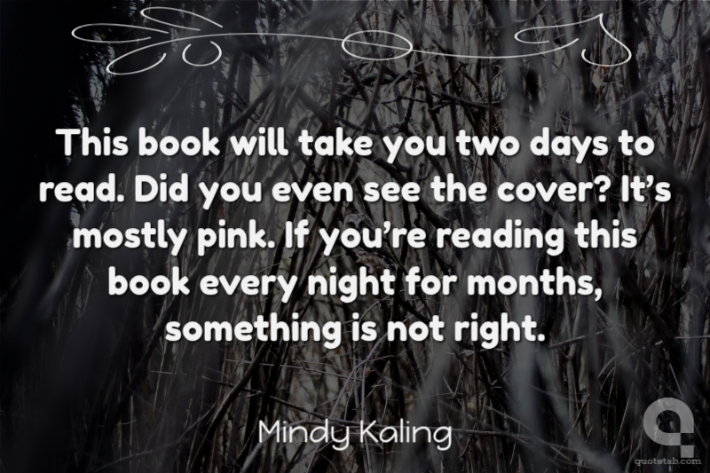 This book will take you two days to read. Did you even see the cover? It’s mostly pink. If you’re reading this book every night for months, something is not right.