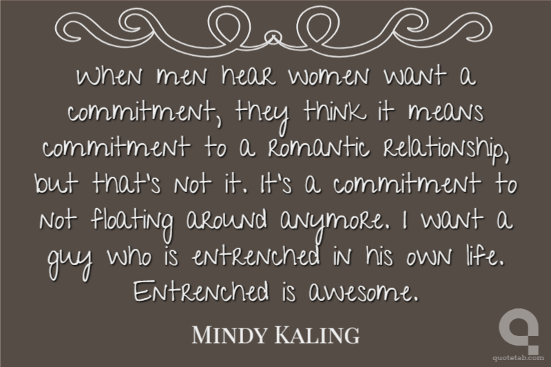 When men hear women want a commitment, they think it means commitment to a romantic relationship, but that's not it. It's a commitment to not floating around anymore. I want a guy who is entrenched in his own life. Entrenched is awesome.