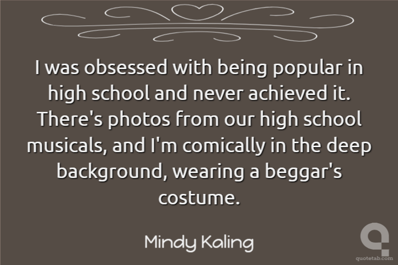 I was obsessed with being popular in high school and never achieved it. There's photos from our high school musicals, and I'm comically in the deep background, wearing a beggar's costume.