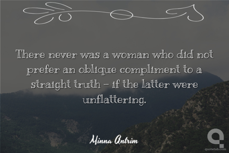 There never was a woman who did not prefer an oblique compliment to a straight truth - if the latter were unflattering.