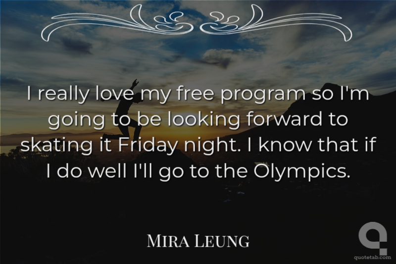 I really love my free program so I'm going to be looking forward to skating it Friday night. I know that if I do well I'll go to the Olympics.