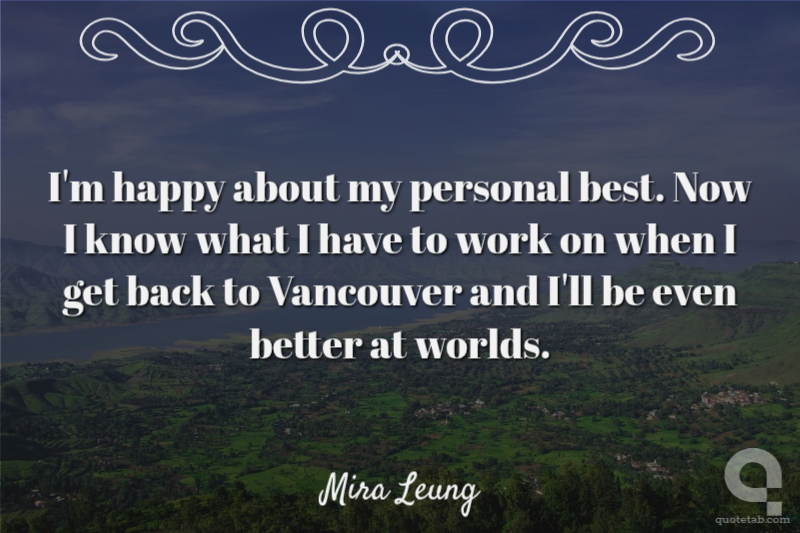 I'm happy about my personal best. Now I know what I have to work on when I get back to Vancouver and I'll be even better at worlds.