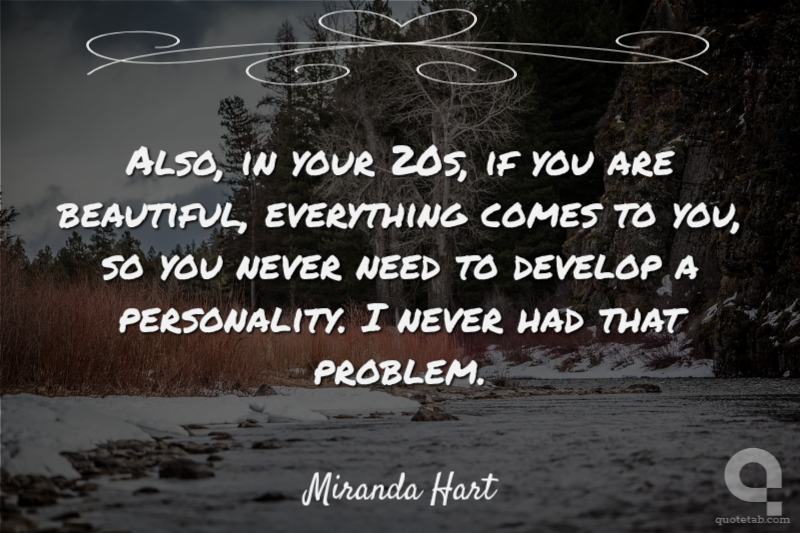 Also, in your 20s, if you are beautiful, everything comes to you, so you never need to develop a personality. I never had that problem.
