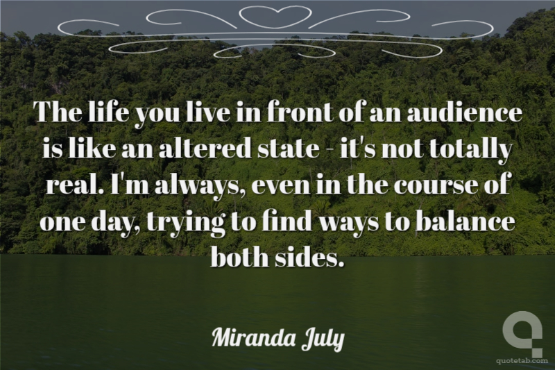 The life you live in front of an audience is like an altered state - it's not totally real. I'm always, even in the course of one day, trying to find ways to balance both sides.