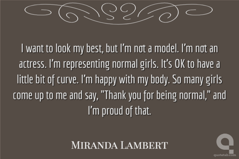 I want to look my best, but I'm not a model. I'm not an actress. I'm representing normal girls. It's OK to have a little bit of curve. I'm happy with my body. So many girls come up to me and say, "Thank you for being normal," and I'm proud of that.