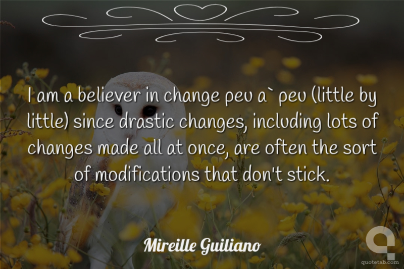 I am a believer in change peu a` peu (little by little) since drastic changes, including lots of changes made all at once, are often the sort of modifications that don't stick.