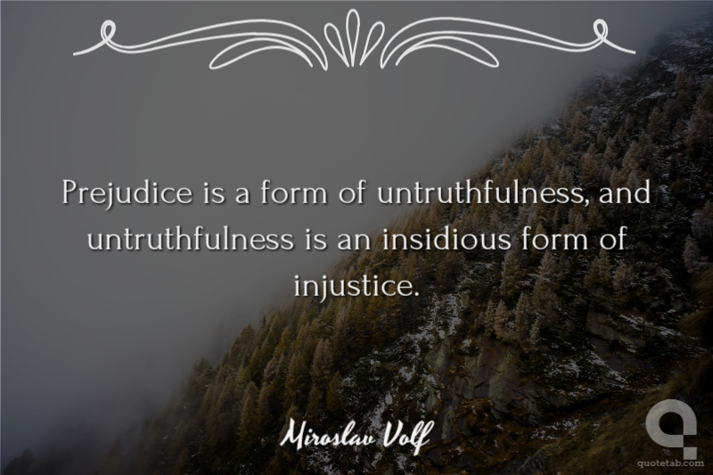 Prejudice is a form of untruthfulness, and untruthfulness is an insidious form of injustice.