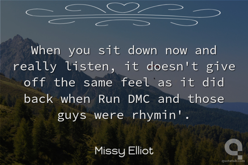 When you sit down now and really listen, it doesn't give off the same feel as it did back when Run DMC and those guys were rhymin'.