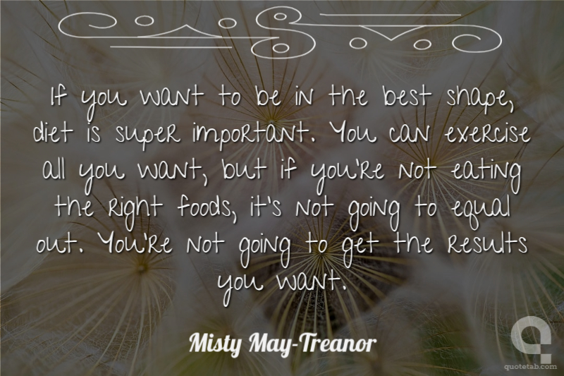 If you want to be in the best shape, diet is super important. You can exercise all you want, but if you're not eating the right foods, it's not going to equal out. You're not going to get the results you want.