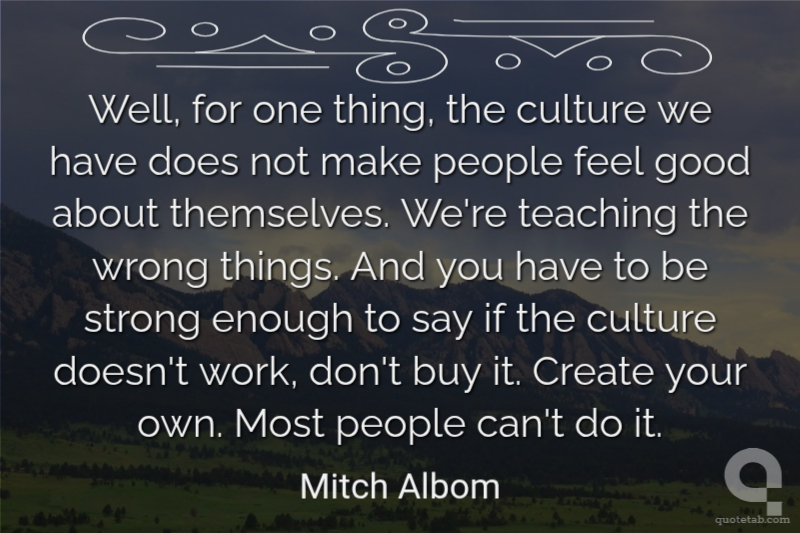 Well, for one thing, the culture we have does not make people feel good about themselves. We're teaching the wrong things. And you have to be strong enough to say if the culture doesn't work, don't buy it. Create your own. Most people can't do it.