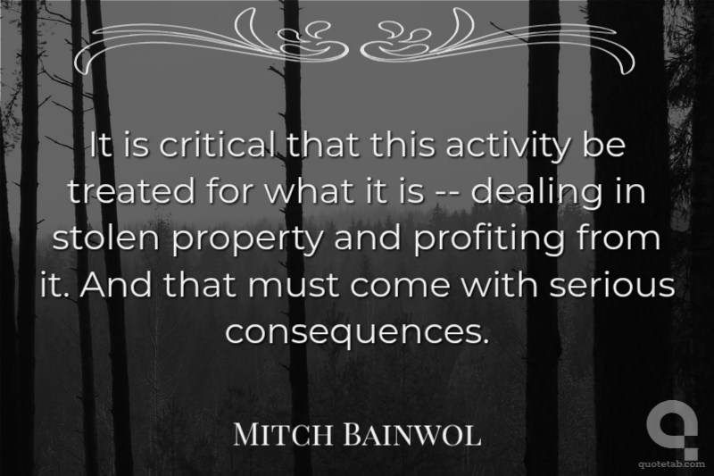It is critical that this activity be treated for what it is -- dealing in stolen property and profiting from it. And that must come with serious consequences.