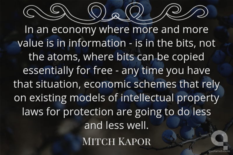 In an economy where more and more value is in information - is in the bits, not the atoms, where bits can be copied essentially for free - any time you have that situation, economic schemes that rely on existing models of intellectual property laws for protection are going to do less and less well.
