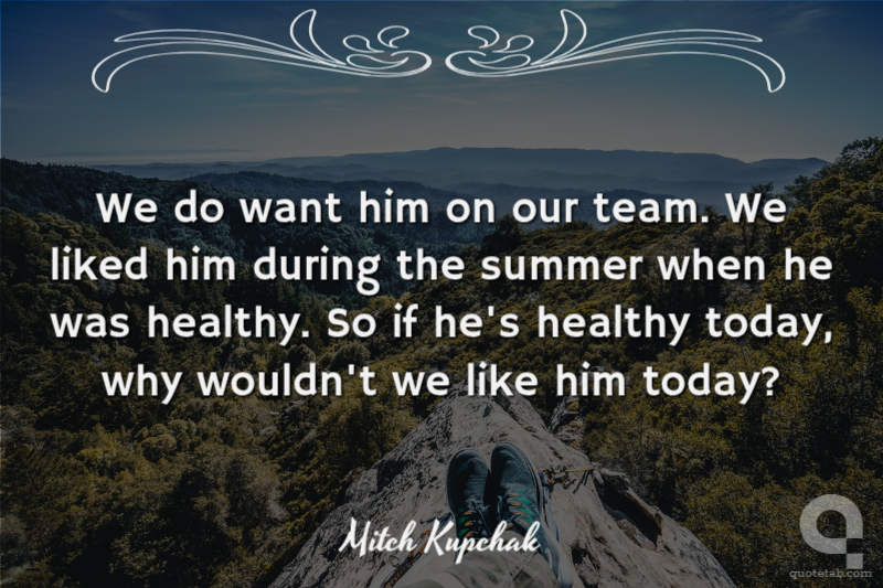 We do want him on our team. We liked him during the summer when he was healthy. So if he's healthy today, why wouldn't we like him today?