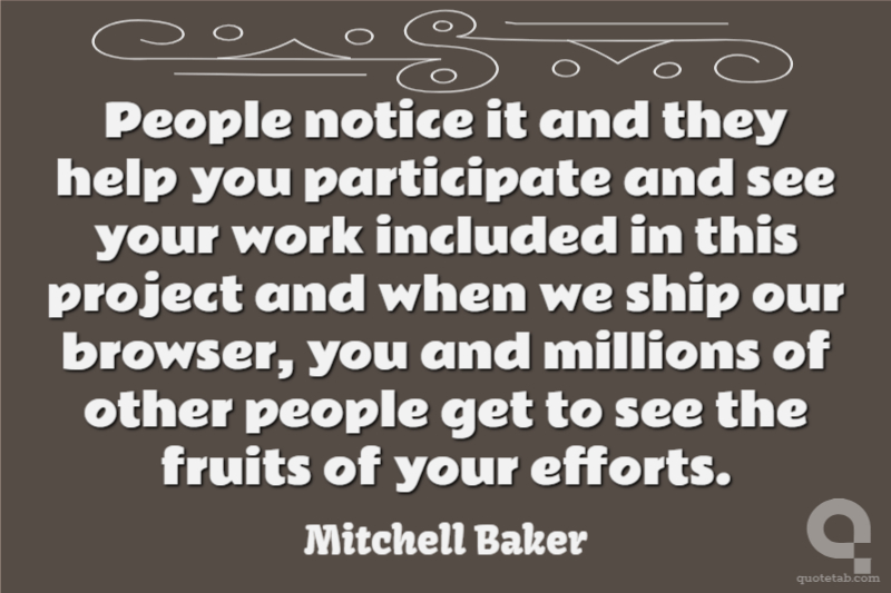 People notice it and they help you participate and see your work included in this project and when we ship our browser, you and millions of other people get to see the fruits of your efforts.