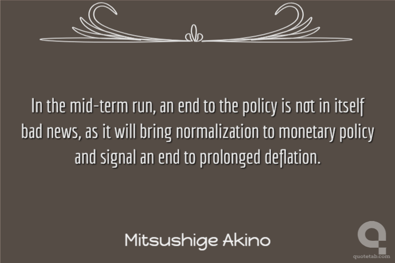 In the mid-term run, an end to the policy is not in itself bad news, as it will bring normalization to monetary policy and signal an end to prolonged deflation.