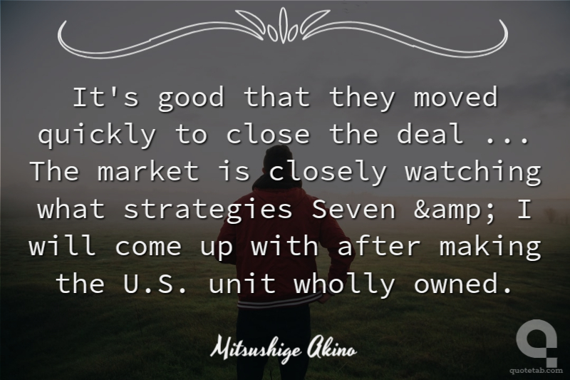 It's good that they moved quickly to close the deal ... The market is closely watching what strategies Seven & I will come up with after making the U.S. unit wholly owned.
