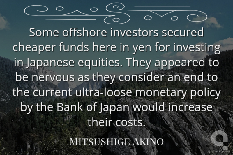 Some offshore investors secured cheaper funds here in yen for investing in Japanese equities. They appeared to be nervous as they consider an end to the current ultra-loose monetary policy by the Bank of Japan would increase their costs.