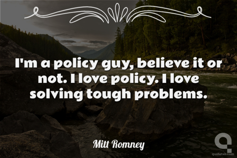 I'm a policy guy, believe it or not. I love policy. I love solving tough problems.