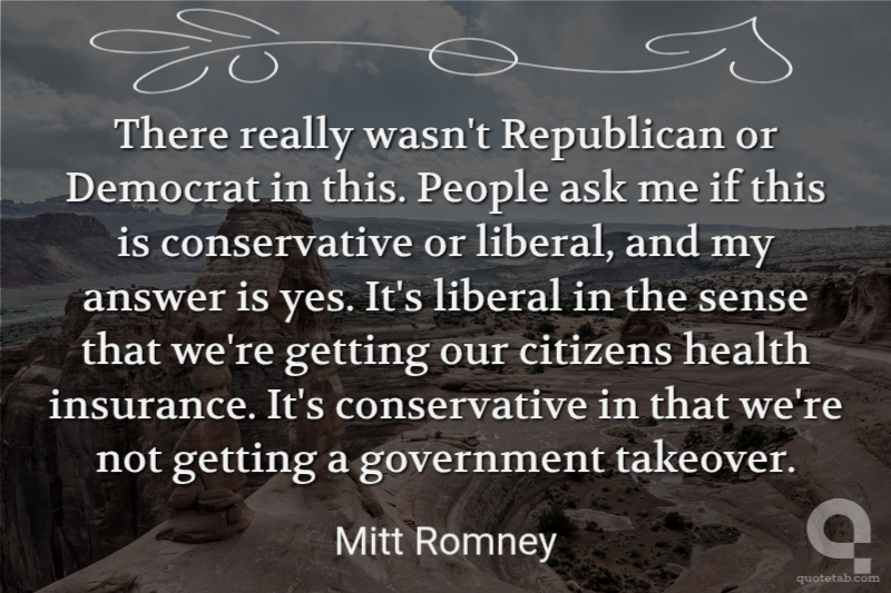 There really wasn't Republican or Democrat in this. People ask me if this is conservative or liberal, and my answer is yes. It's liberal in the sense that we're getting our citizens health insurance. It's conservative in that we're not getting a government takeover.