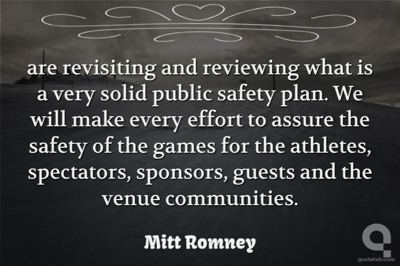 are revisiting and reviewing what is a very solid public safety plan. We will make every effort to assure the safety of the games for the athletes, spectators, sponsors, guests and the venue communities.