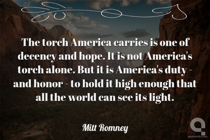The torch America carries is one of decency and hope. It is not America's torch alone. But it is America's duty - and honor - to hold it high enough that all the world can see its light.